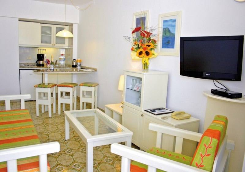 Die Appartements sind auf erwachsene Bedürfnisse zugeschnitten: separater Schlafraum und ein Wohnbereich schaffen Rückzug und Platz für gemeinsame Stunden. Eine Kitchenette mit Kaffeemaschine ermöglicht kleine Mahlzeiten, der Balkon erweitert den Wohnraum nach draußen. Sat-TV und kostenloses WLAN halten Euch verbunden, die Klimaanlage sorgt für konstante Temperaturen. Highlight: Getrennter Schlafraum plus Wohnbereich für flexible Tagesabläufe.