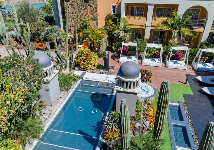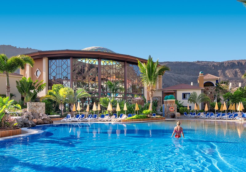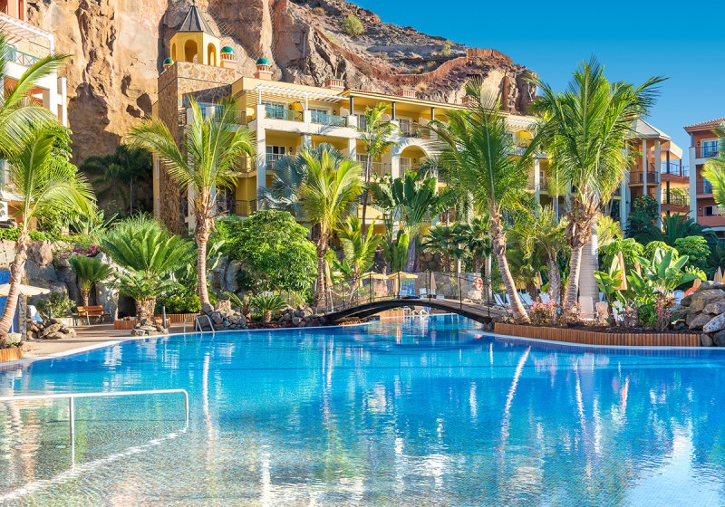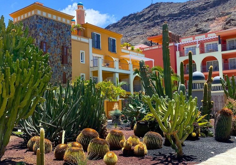 Im weitläufigen Ensemble des Hotel Cordial Mogán Playa wohnt Ihr in mehreren Gebäuden auf rund 48.000 Quadratmetern, oberhalb der Bucht von Puerto de Mogán. Die Anlage verbindet Gartenwege, stille Plätze und lebendige Treffpunkte mit einer eigenen Dorfkirche und einem Archäologischen Park. So entsteht ein Aufenthalt, der Struktur und Abwechslung vereint – entspannt, nah am Wasser, doch angenehm überschaubar.