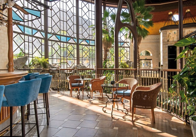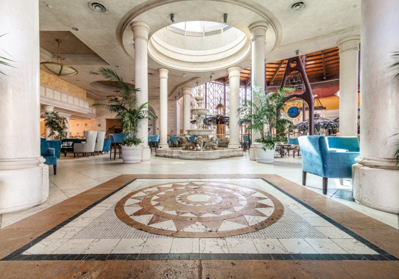 Die Infrastruktur ist umfassend und klar strukturiert: Empfangshalle mit 24-Stunden-Rezeption, kostenloses WLAN im gesamten Hotel und kurze Wege zwischen den Bereichen. Dorfkirche und Archäologischer Park verleihen dem Ensemble Charakter. Mehrere Gebäude fügen sich zu einer Anlage mit 487 Zimmern.