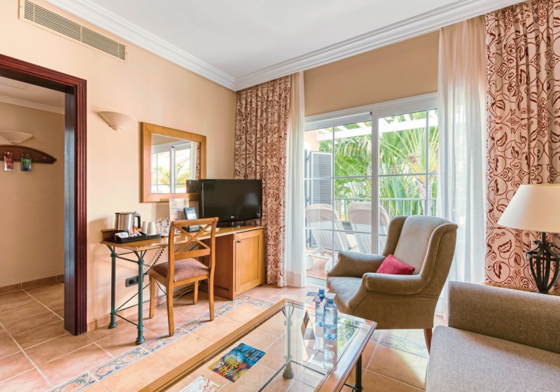 Ihr wählt zwischen ca. 30 m² Doppelzimmern, Juniorsuiten mit etwa 39 m² und separatem Wohnbereich sowie Familienzimmern mit rund 63 m² und zwei Schlafräumen. Alle Wohneinheiten verfügen über Balkon oder Terrasse, zentral gesteuerte Klimaanlage, Sat-TV, Telefon, Minibar, Mietsafe und ein Bad mit Badewanne/WC.
