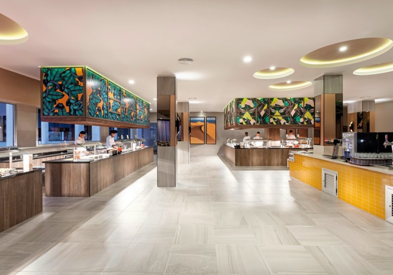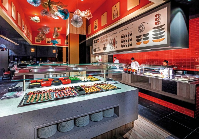 - Starkes Buffet: Hauptrestaurant mit Live-Kochen und gut strukturierten Abläufen.