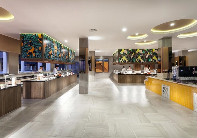 Im Hauptrestaurant wählt Ihr am Buffet; Live-Kochen und Snacks ergänzen die Optionen. Abends steht zusätzlich ein À-la-carte-Restaurant mit Reservierung bereit. Mehrere Bars sowie eine Pool-/Snackbar versorgen Euch ganztags mit alkoholfreien und alkoholischen Getränken, je nach gebuchter Verpflegung bis hin zu All-Inclusive.