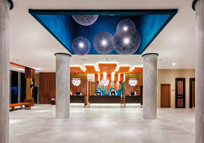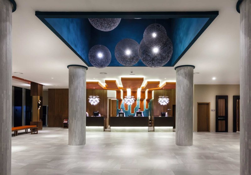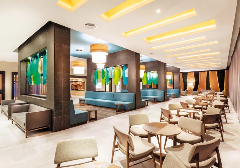 Den Rahmen setzen 475 Zimmer, die sich über fünf Etagen verteilen. WLAN ist im gesamten Hotel inklusive, Aufzüge verbinden die Bereiche bequem, und eine helle Empfangshalle bildet den Mittelpunkt. Tagsüber entspannt Ihr am Pool oder nutzt den Fitnessraum, abends greift Ihr zu À-la-carte oder Buffet und lasst bei Live-Musik den Tag in den Ferien ausklingen.