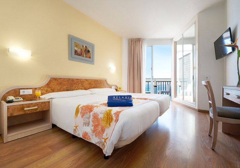 Ihr wohnt in funktional ausgestatteten Zimmern mit Sat-TV, Telefon und Badezimmer mit Badewanne oder Dusche/WC. Ein Balkon gehört zur Grundausstattung; Zimmer mit Meerblick sind verfügbar. Familien wählen großzügige Einheiten mit Verbindungstür, einem Badezimmer und Balkon oder Terrasse. Highlight: Familienzimmer mit Verbindungstür für gemeinsames Wohnen.