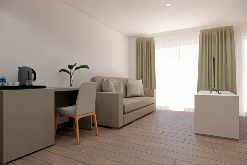 Die Zimmer des Hotels sind komfortabel und modern ausgestattet. Sie verfügen unter anderem über eine Klimaanlage, Balkon oder Terrasse, Badezimmer mit Badewanne oder Dusche, Kühlschrank und Mikrowelle, Minibar, Telefon, Safe, Fernseher und WiFi. Darüber hinaus stehen sowohl Nichtraucher- als auch Raucherzimmer sowie rollstuhlgerechte Zimmer zur Verfügung. Einige Zimmer bieten einen atemberaubenden Meerblick.