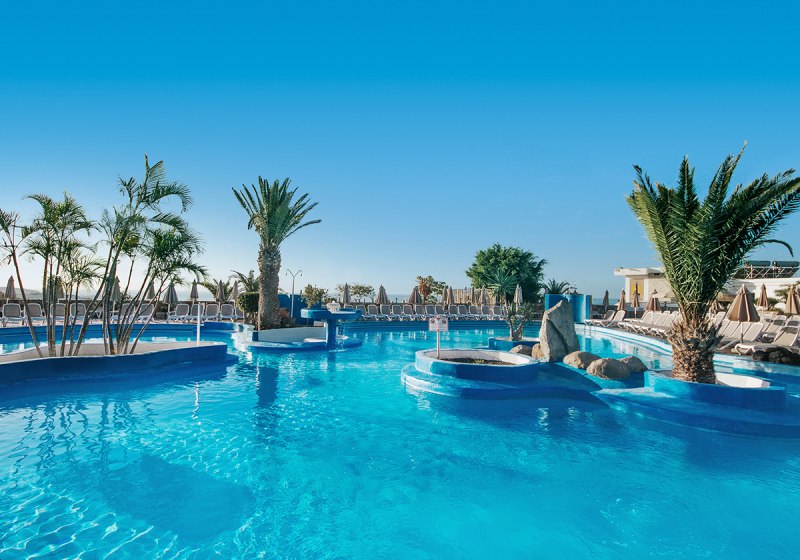 Servatur Puerto Azul bündelt Hanglage mit Panorama, fünf Poolzonen und klarer Struktur für Familien und Paare. Ihr wählt zwischen Miniclub, Splash Park, Adults-Only Bereichen und abendlicher Livemusik. Das Buffet mit Terrasse, Bars und durchdachte Services halten den Tageslauf leicht.