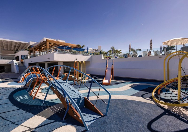 Für den täglichen Bedarf findet Ihr zusätzliche Services wie Gepäckaufbewahrung, Tour-Desk, Mietwagenverleih, Geldautomat und SB-Wäscherei. Der Fitnessbereich ab 16 ist klar getrennt, der Multifunktionsplatz eröffnet sportliche Momente. Kinderspielplatz, Spielzimmer und Aufenthaltsräume binden das Ensemble zusammen. Highlight: Mehrere Pool- und Terrassenebenen verbinden Aussicht, kurze Wege und klare Zonen.
