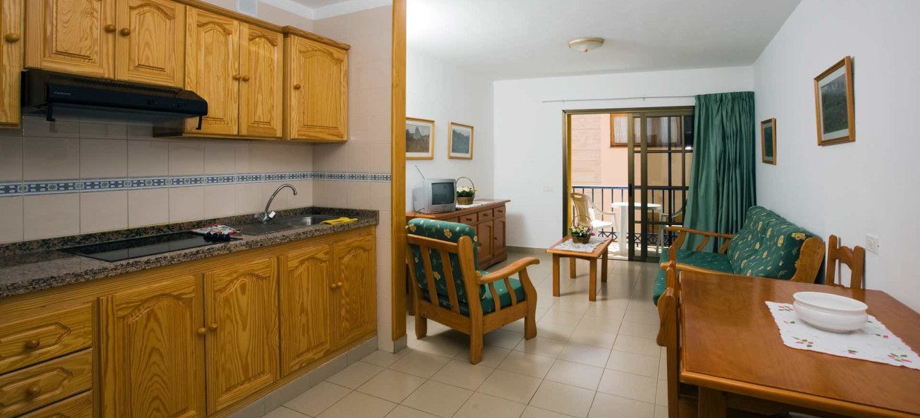 Die Apartments sind für Selbstversorger gedacht, mit kompletter Küche ohne Ofen und vier Ceranfeldern. Reinigung erfolgt zweimal pro Woche, Handtücher werden zweimal pro Woche, Bettwäsche einmal wöchentlich gewechselt. WLAN ist inklusive, der Safe kostenfrei, und Sat-TV bietet auch deutsche Programme – praktisch für entspannte Abende in den Ferien.