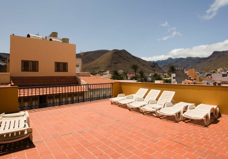 Im Apartments La Hila wohnt Ihr in einem kleinen Apartmenthaus mit sechs Wohneinheiten auf zwei Etagen. Die Atmosphäre ist persönlich und überschaubar, ideal, wenn Ihr eine klare Basis für eigene Pläne sucht. Auf der Gemeinschaftsdachterrasse mit Liegen sammelt Ihr Sonne und Blickmomente über den Dächern von San Sebastián de La Gomera.