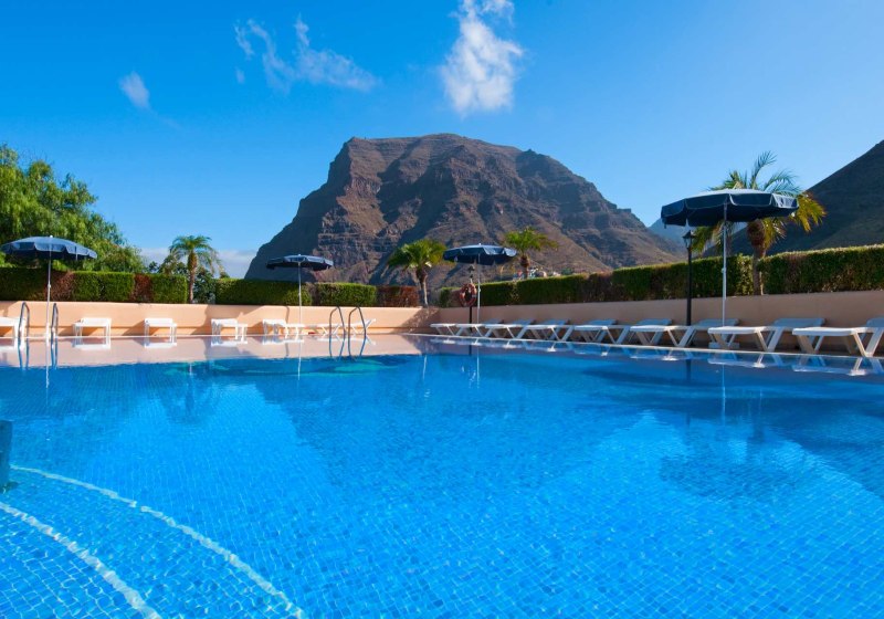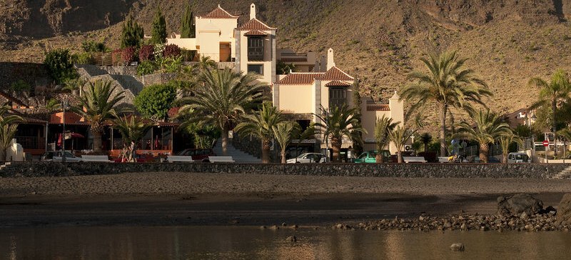 Ihr urlaubt in Valle Gran Rey auf La Gomera, nahe Puerto de Vueltas. Das Meer liegt gleich gegenüber, getrennt durch eine Uferstraße. Zum Hauptstrand im Ortsteil Playa sind es rund 400 Meter, außerdem befindet sich ein Lavasandstrand am Hafen in der Nähe – ideale Orientierungspunkte für Euren Tagesablauf.