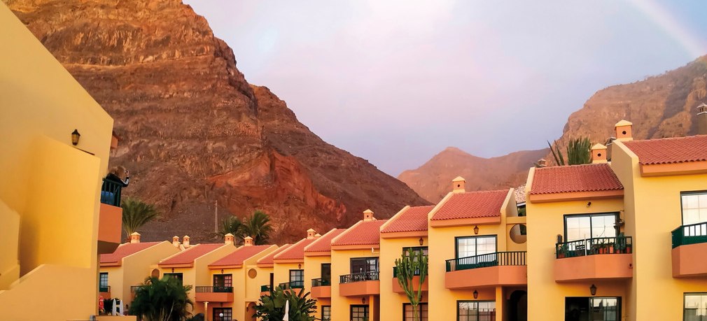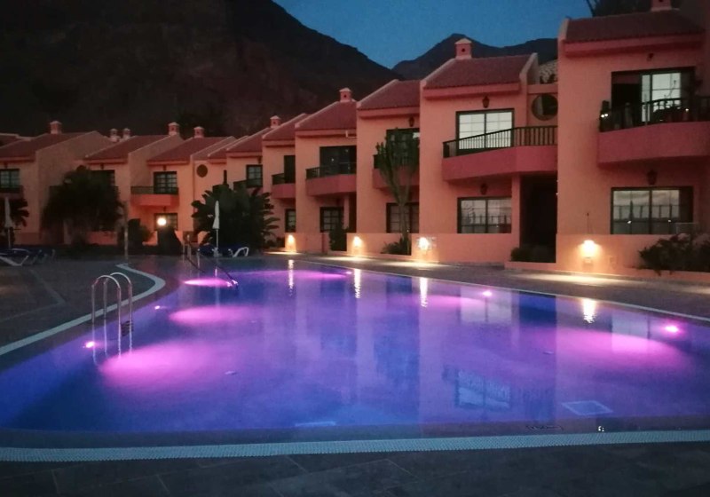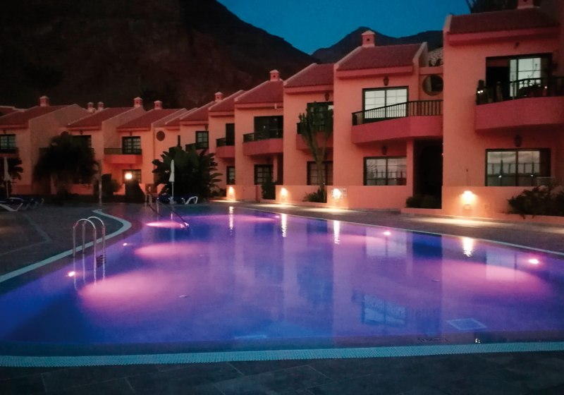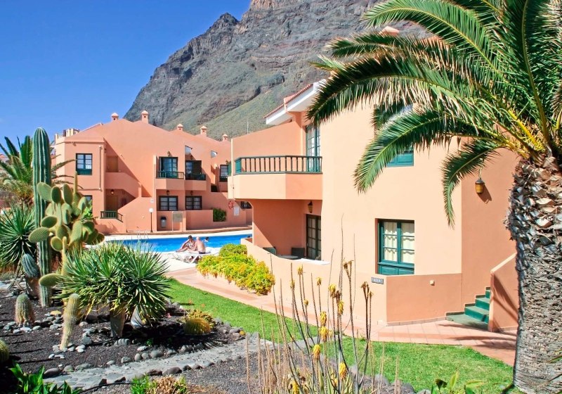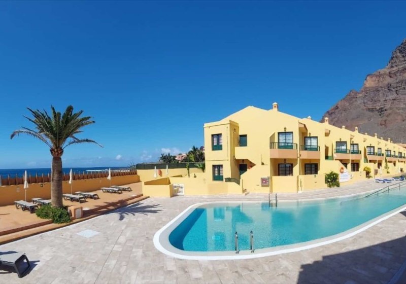 Complejo Las Tres Palmeras empfängt Euch in Valle Gran Rey, Ortsteil Playa, mit einer geradlinigen Apartment-Architektur in U-Form um Garten und Pool. Ihr wohnt in eigenständigen Appartements, gestaltet Euren Tagesrhythmus flexibel und bleibt dank inklusive WLAN überall verbunden. Der Weg zum Meer ist kurz, die Lavasandstrände erreicht Ihr nach wenigen Gehminuten. So fühlt sich der Aufenthalt zugleich unabhängig und angenehm eingebettet an.