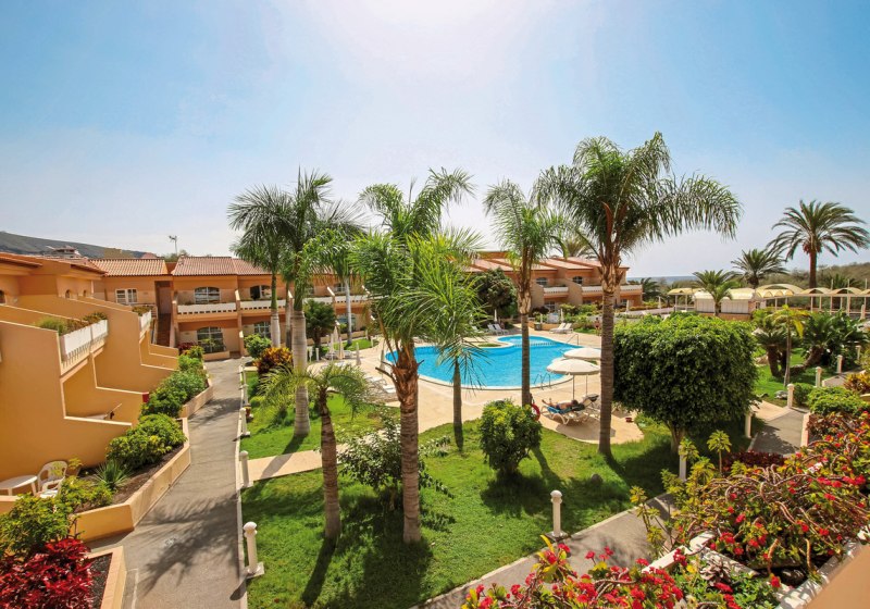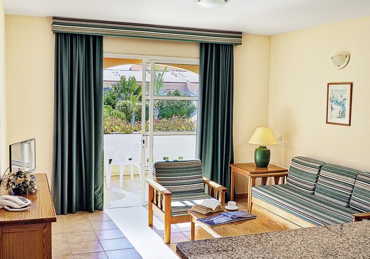 Im Jardin del Conde wohnt Ihr in großzügigen Appartements mit Wohnbereich und Küche – perfekt, wenn Ihr im eigenen Rhythmus unterwegs seid. Die Anlage wirkt übersichtlich, mit Garten, Sonnenterrasse und Süßwasserpool samt Kinderbecken. Morgens startet Ihr entspannt am Frühstücksbuffet, danach wartet der Strand La Playa in angenehmer Gehweite.