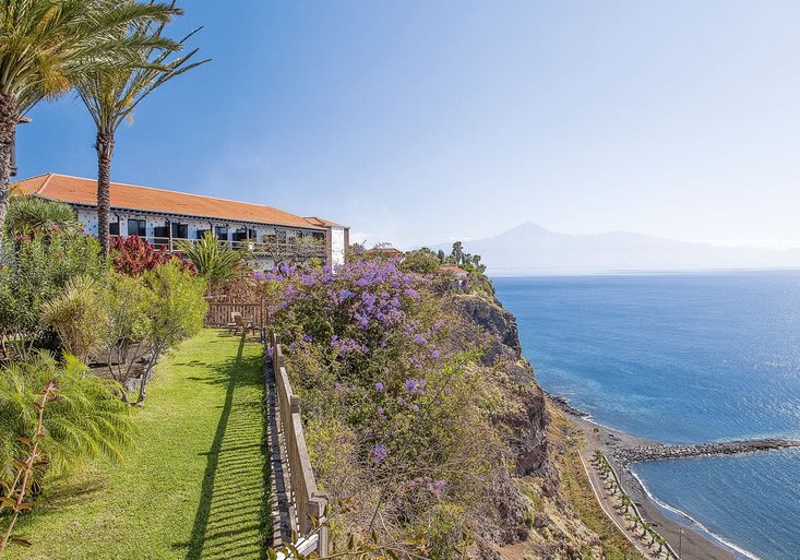 Parador de La Gomera liegt in La Lomada auf einem Hochplateau oberhalb des Hafens von San Sebastián de La Gomera. Der Höhenunterschied zur Stadt beträgt rund 70 Meter, wodurch Ihr den Blick über den Atlantik bis Teneriffa und zum Teide erlebt. Zum Lava- und Kiesstrand sind es etwa 1,5 Kilometer.