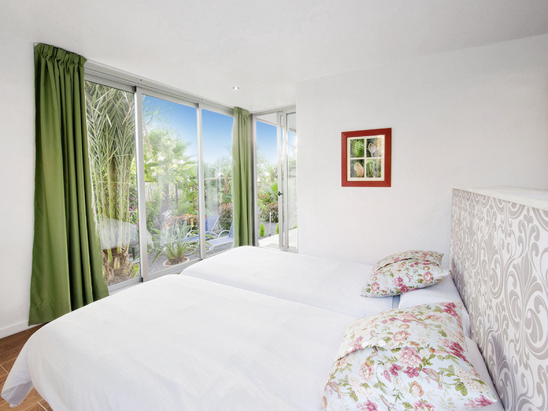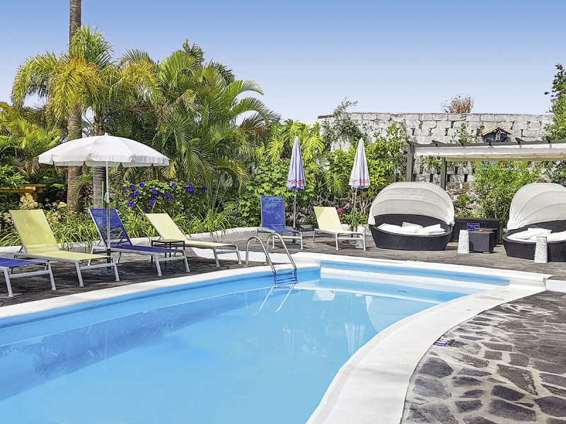 Ihr wohnt zentral in Los Llanos, rund 500 Meter vom Ortskern entfernt. So erreicht Ihr Läden und Cafés in wenigen Minuten, habt aber auf dem Gelände Ruhe. Zum dunklen Lavasandstrand sind es etwa neun Kilometer. Diese Lage verbindet urbanen Zugang mit der entspannenden Gartenatmosphäre der Anlage.