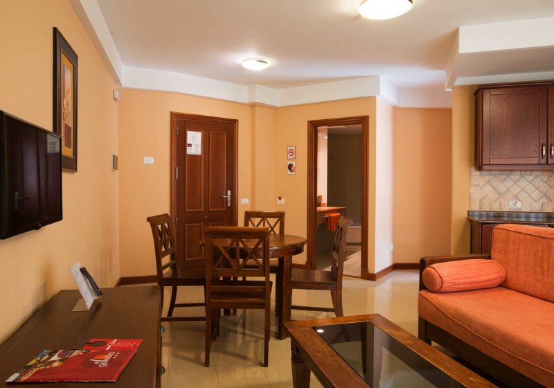 Ihr wohnt in Appartements mit ein oder zwei Schlafzimmern und separatem Wohnraum – ideal, wenn Ihr Platz und Struktur wünscht. Eine komplett eingerichtete Küche, TV und WiFi schaffen Unabhängigkeit, während Balkon oder Terrasse frische Luft und zusätzlichen Rückzug bieten. Das Bad ist mit Wanne und Föhn ausgestattet, Wertsachen lagern im Mietsafe.