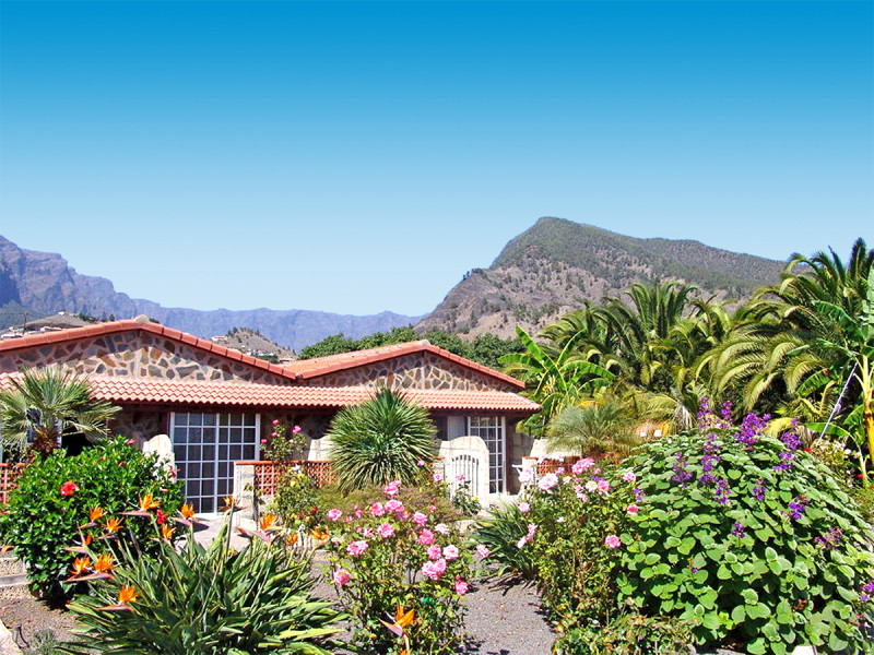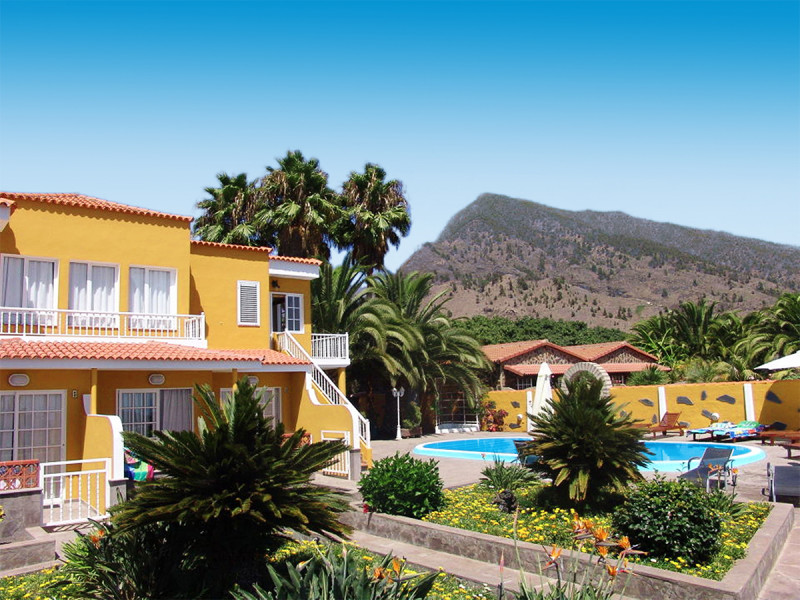 Zwischen Vulkankegeln und grüner Schluchtkulisse wohnt Ihr im El Palmeral in nur neun Wohneinheiten, im kanarischen Baustil gebaut und angenehm überschaubar. Der Blick reicht von Terrasse oder Balkon in Richtung Meer, dazu ein Außenpool mit Sonnenterrasse, Liegen und Schirmen. Die Atmosphäre wirkt entspannt, auf Selbstbestimmung ausgerichtet und ohne Programmdruck.
