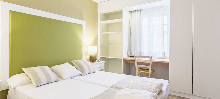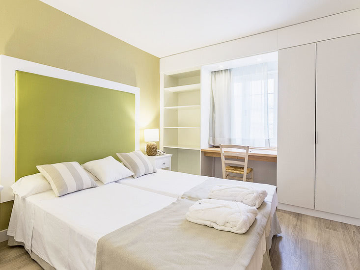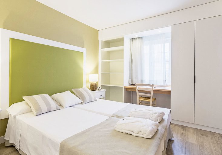 Im Hacienda San Jorge wohnt Ihr in einem Apartmenthotel, das Euch Raum gibt: 50 m² große Apartments, viele mit Balkon oder Terrasse und Blickoption aufs Meer, eingebettet in eine 10.000 m² große Gartenanlage. 2023 renoviert, präsentiert sich das Haus gepflegt und klar strukturiert – ideal, wenn Ihr Rückzug und gut organisierte Infrastruktur schätzt.