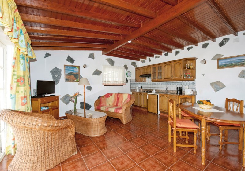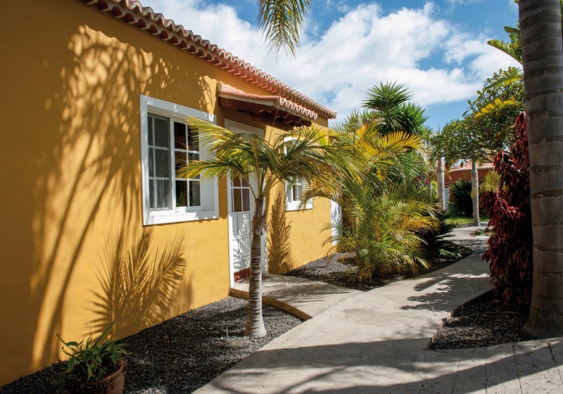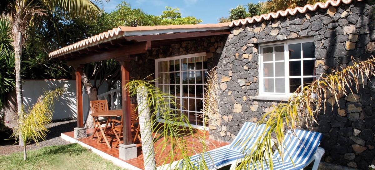 In Villa & Casitas Caldera wohnt Ihr in Bungalows mit privatem Gartenbereich, separatem Wohnraum und eigener Küchenzeile. Die Anlage wirkt übersichtlich und grün, mit endemischen Pflanzen in der Gartenanlage. Am Swimmingpool findet Ihr Liegestühle und Badetücher, dazu eine Sonnenterrasse mit ruhigen Plätzen unter einer Pergola. Highlight: Endemischer Garten. Botanische Vielfalt prägt Wege und Terrassen angenehm unaufdringlich.