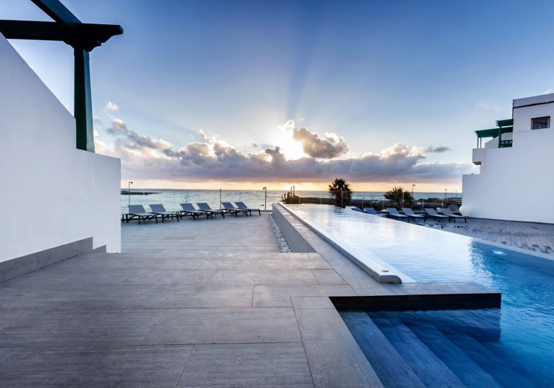 Im Barceló Teguise Beach checkt Ihr in ein Adults-Only-Haus ab 18 Jahren ein, das direkt an einer Badebucht in Costa Teguise liegt. Zwei Außenpools, Sonnenterrassen und ruhige Gemeinschaftsbereiche geben den Ton an. Das Ambiente wirkt modern, aufgeräumt und serviceorientiert, mit verlässlichem WLAN in der gesamten Anlage und Rezeption sowie Aufzug für kurze Wege. Hier erlebt Ihr einen strukturierten Aufenthalt ohne Überfrachtung, getragen von klaren Angeboten und einem erwachsenen Publikum.