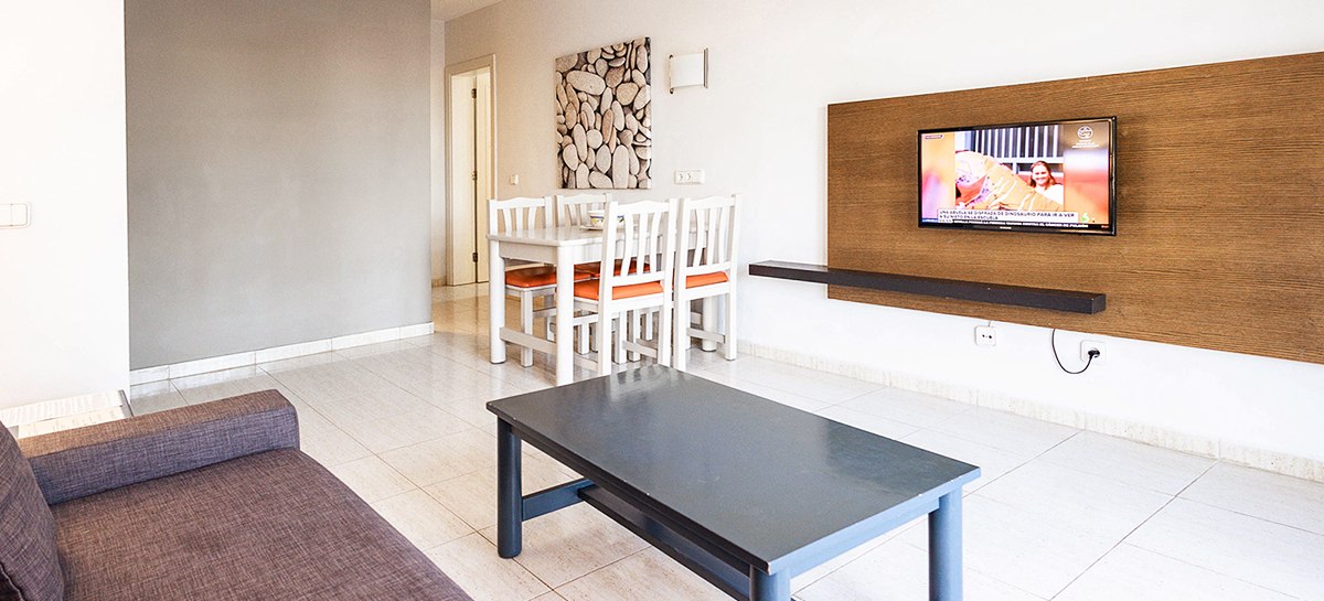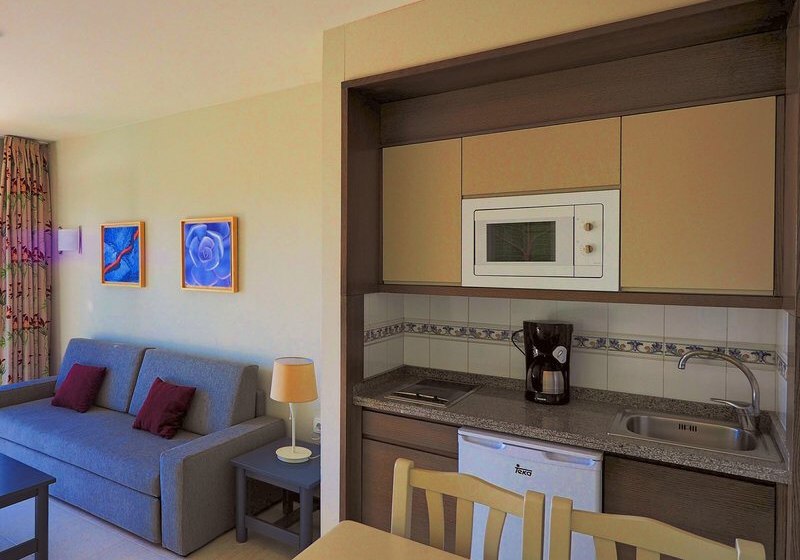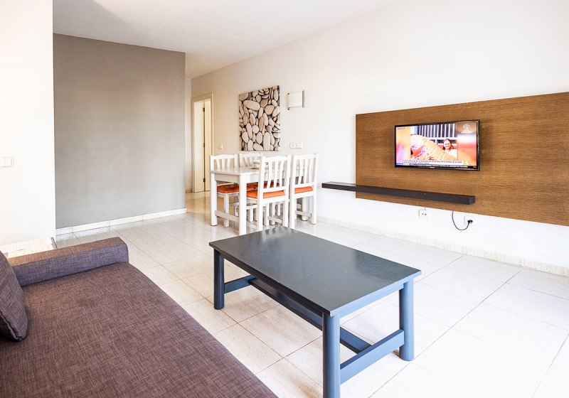 Ihr wohnt in Appartements mit einem oder zwei Schlafzimmern auf rund 35 bis 52 Quadratmetern. Ein separater Wohn‑/Schlafraum mit Sofabett schafft flexible Zonen. Balkon oder Terrasse erweitert den Aufenthalt ins Freie, Einheiten mit Poolblick sind verfügbar.