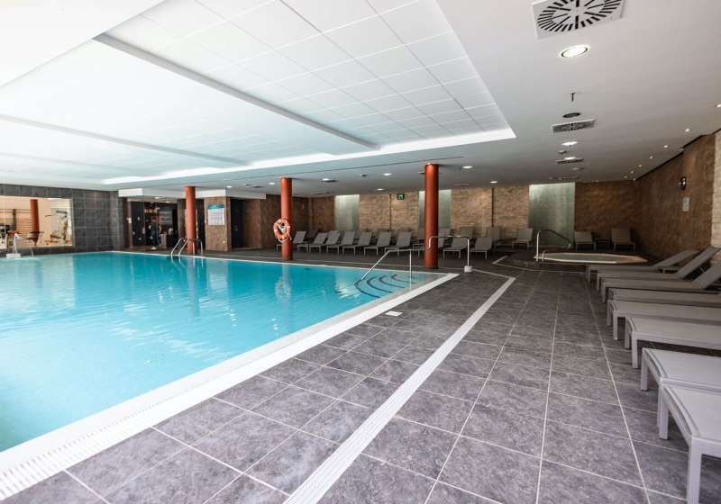 Der Wellnessbereich setzt auf Ruhe und klare Regeln: Der beheizte Indoorpool ist ab 18 Jahren zugänglich, Liegestühle im Bereich sorgen für entspannte Pausen nach Sport oder Strand. So bleibt es konzentriert und angenehm leise.