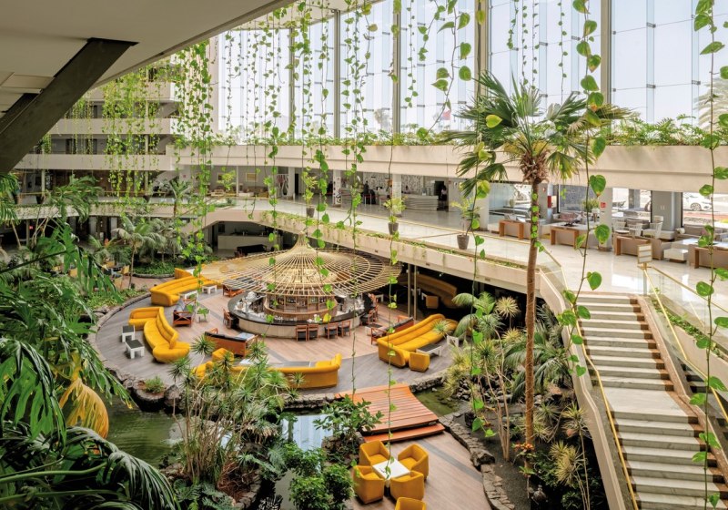 Das Haus bietet 300 Zimmer, eine 24-Stunden-Rezeption und WLAN im gesamten Hotel. Sechs Aufzüge verbinden die Etagen; ein TV-Raum und Außenbereiche mit Liegen und Sonnenschirmen rahmen die Poolzone. Poolhandtücher erhaltet Ihr gegen Kaution, Eure Velos parkt Ihr im Abstellraum. Haustiere sind nicht erlaubt.