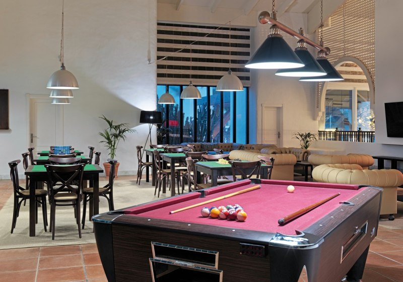 Im Außenbereich warten drei Pools mit Sonnenbereichen, Liegestühlen und Schirmen, dazu eine Poolbar und ruhige Gartenflächen. Ein Friseur, Shops und ein Supermarkt befinden sich im Haus. Für Meetings steht ein Konferenzraum mit Projektortechnik bereit – kurze Wege, klare Abläufe, zuverlässige Infrastruktur.
