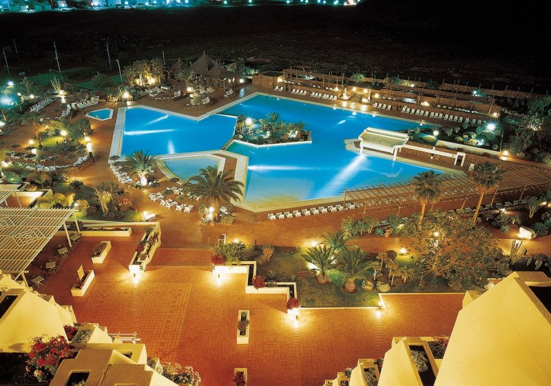 Das Haus bietet 350 Zimmer auf sechs Etagen, eine helle Empfangshalle mit Rezeption und drei Lifte. Konferenzräume und eine kleine Shopping-Zone ergänzen die Infrastruktur. In der Gartenanlage liegen zwei große Pools, ein Kinderbecken, ein Außen-Whirlpool und weitläufige Sonnenterrassen mit Liegen. WLAN steht in der gesamten Anlage inklusive bereit.