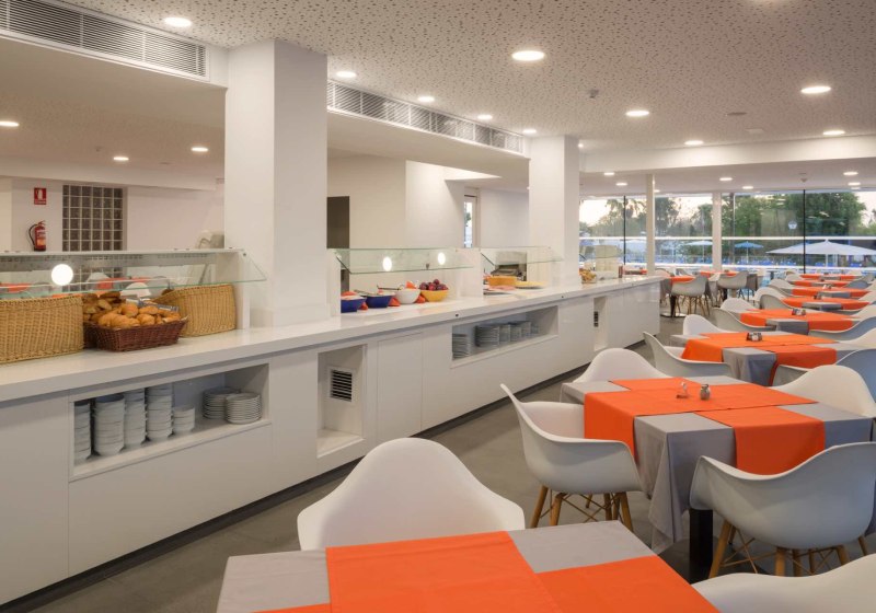 Vier beheizte Außenpools und zwei Kinderbecken geben Euch Spielraum zwischen Aktivität und Auszeit. Mit Minimarkt vor Ort, kostenfreiem Safe und Parkplatz bleibt Ihr flexibel. Kulinarisch wählt Ihr zwischen Restaurant, Pool‑Snackbar und Pool‑Hotelbar; Verpflegungsoptionen wie Frühstück bis Halbpension sowie vegetarische, glutenfreie und kindgerechte Angebote sind vorgesehen. Für Abwechslung sorgen Animationsprogramm, Live‑Musik, Miniclub und Billard. So gestaltet Ihr Euren Tag am Meer fokussiert, erholsam und planbar.