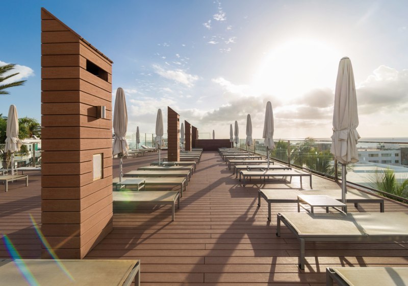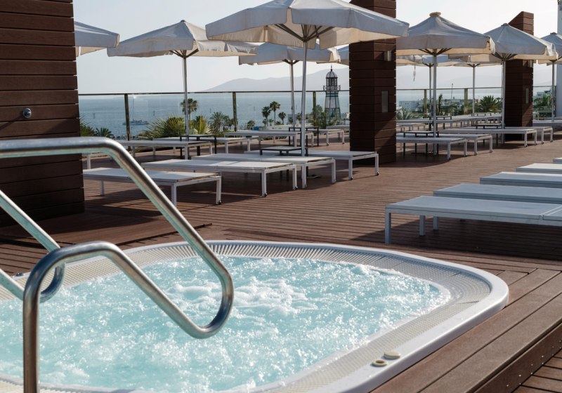 Auf der Panorama-Sonnenterrasse findet Ihr den Whirlpool – ideal für eine ruhige Session mit Weitblick, bevor es wieder an Strand oder Pool geht. Das Solarium ergänzt das Angebot vor Ort und bleibt eine schlichte, praktikable Option für entspannte Pausen.