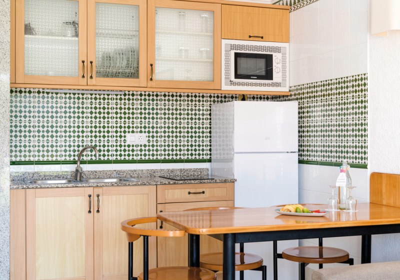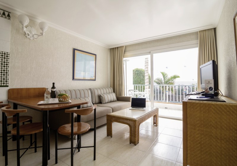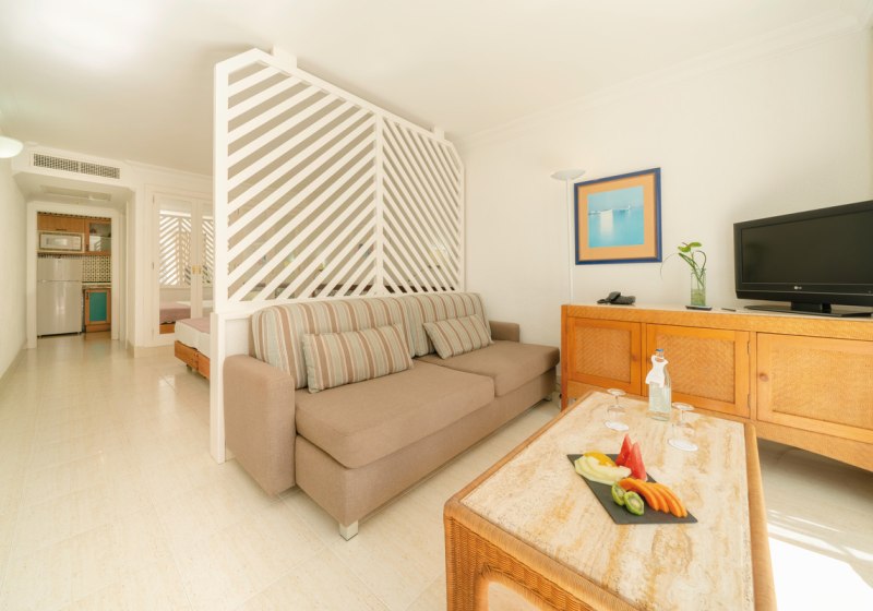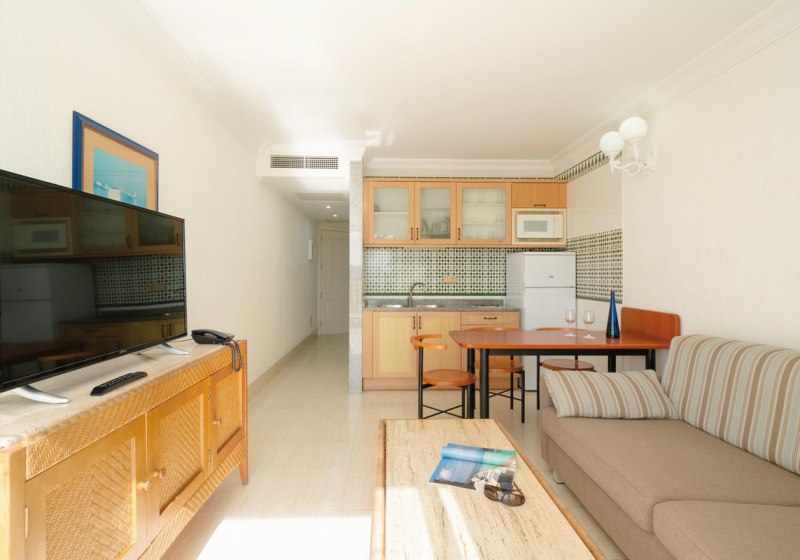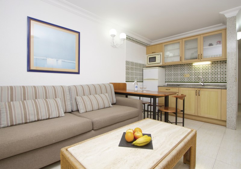 Im Plus Fariones Apartamentos wohnt Ihr in hellen Appartements mit eigener Einbauküche – genau der richtige Rahmen, wenn Ihr viel Freiraum und Hotelkomfort verbinden wollt. Die Gartenanlage mit Außenpool und beheizbarem Kinderbecken wirkt angenehm ruhig, während die Panorama-Sonnenterrasse mit Whirlpool Euch Weitblick schenkt. Tägliche Reinigung mit Handtuchwechsel und ein kostenfreier Safe unterstreichen den sorgsam organisierten Aufenthalt.