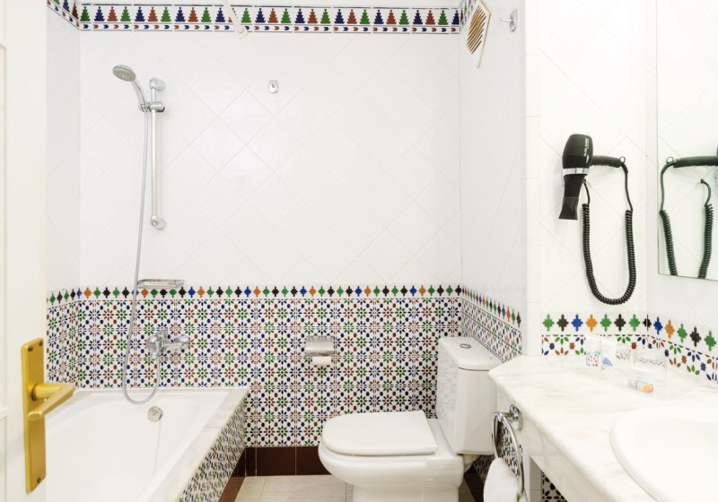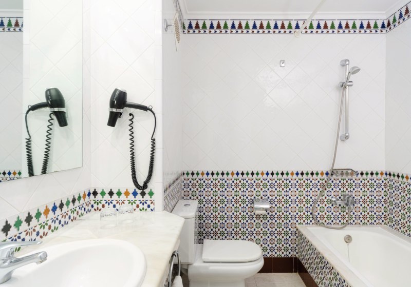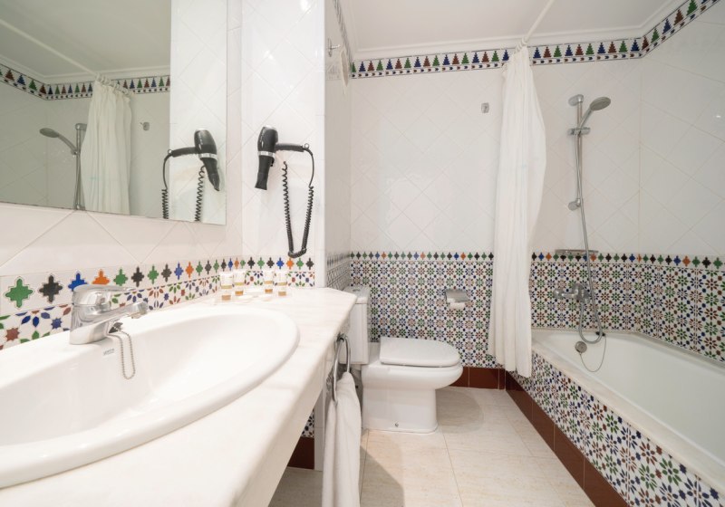 Badewanne mit Dusche/WC und Föhn gehören zum Standard. Verdunkelungsvorhänge, Fliesenboden und internationale Sender erhöhen den Komfort, einige Einheiten liegen in der dritten Etage. Möblierte Balkone oder Terrassen blicken je nach Lage in Garten oder zum Pool. Klimaanlage ist wahlweise buchbar; Babybett, Heizung oder Ventilator sind verfügbar – durchdacht für Paare und Familien.