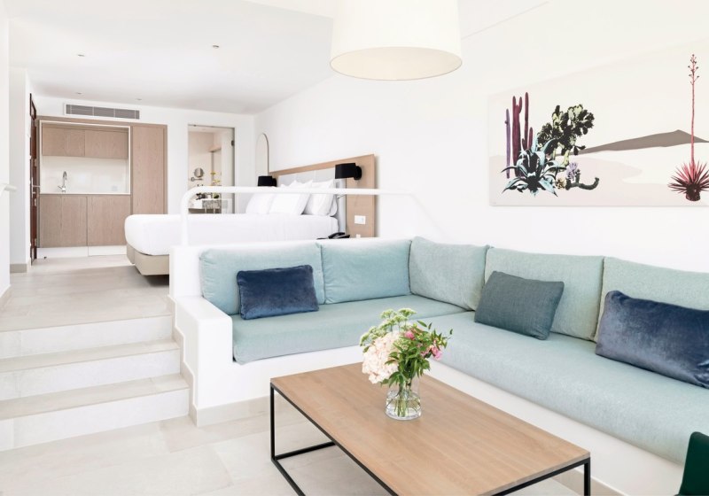 Alle Suiten bieten rund 39 Quadratmeter, ein separates Schlafzimmer und einen Wohnbereich, teils über drei Stufen gegliedert. Dazu kommen Balkon oder Terrasse, Klimaanlage, Dusche mit Föhn sowie Sat-TV und Safe. Die Kitchenette ist mit Kühlschrank, Mikrowelle und Wasserkocher auf kurze Wege ausgelegt.