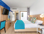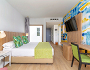 In diesem Resort wählen Sie zwischen Doppelzimmer, Suite, Juniorsuite und Familienzimmer. Ihre Unterkünfte sind lichtdurchflutet, modern und farbenfroh ausgestattet. Alle Zimmerkategorien sind sehr geräumig und verfügen über kostenloses WLAN, einen Balkon oder eine Terrasse sowie über Sat-TV, Fön, Kühlschrank und Telefon. Die Benutzung des Safes kann dazu gebucht werden. Bei Suiten finden Sie im Badezimmer Bademäntel vor. Familienzimmer punkten mit einer Verbindungstür zwischen den getrennten Schlafbereichen.Gastronomie und Restaurants