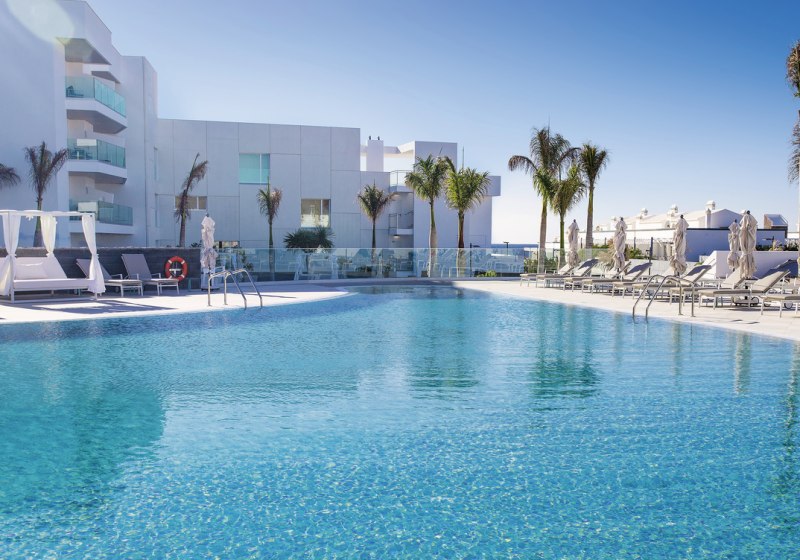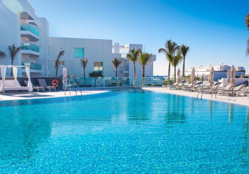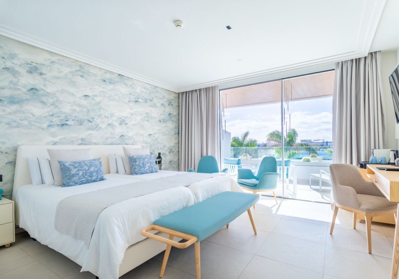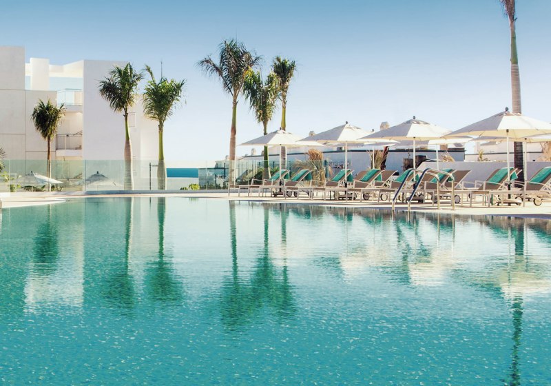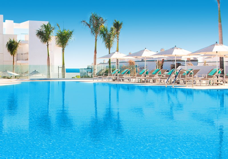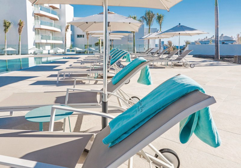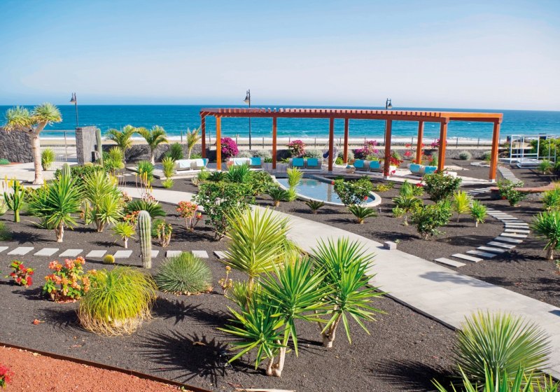 Im Hotel Lava Beach wohnt Ihr direkt am weiten Sandstrand Playa de los Pocillos. Die Anlage wirkt klar strukturiert, modern und ruhig. Weitläufige Gartenbereiche rahmen die Wege, während der Blick immer wieder Richtung Meer wandert. Hier startet Ihr den Tag entspannt, entscheidet spontan zwischen Strand, Pool und Spa und kehrt abends zu Musik an die Bar zurück.