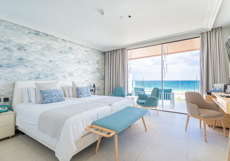 Bäder sind mit Dusche oder Hydromassagebadewanne ausgestattet, dazu separates WC, Föhn sowie auf Anfrage Bademäntel und Hausschuhe. Bei den Kategorien wählt Ihr Doppelzimmer, Doppelzimmer mit Meerblick, Doppelzimmer Premium Meerblick oder Juniorsuiten. Letztere verfügen über einen separaten Wohnbereich mit Schlafsofa und zwei TVs – ideal, wenn Ihr mehr Raum schätzt. Highlight: Meerblick-Kategorien bringen Euch die Küstenlinie direkt ins Zimmer.