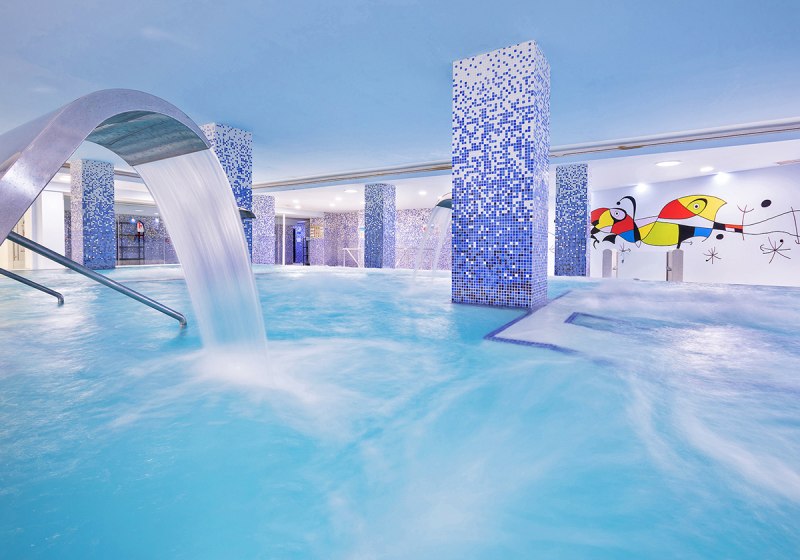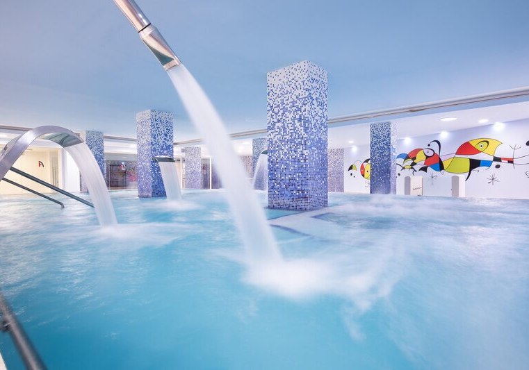 - Großes Spa: Über 1.100 Quadratmeter mit Becken, Sauna und Thermalzonen.