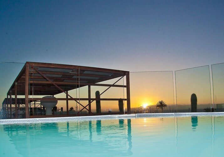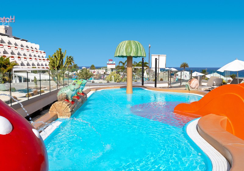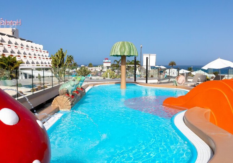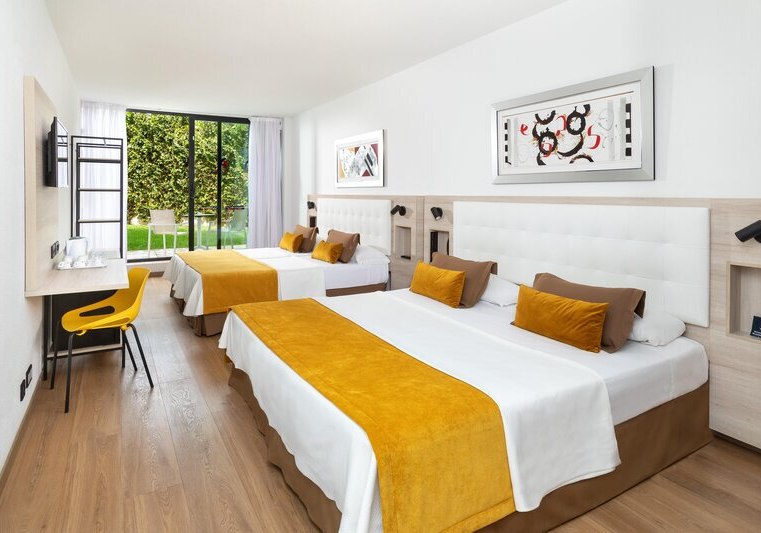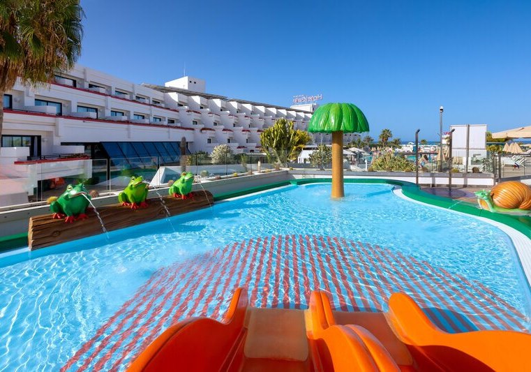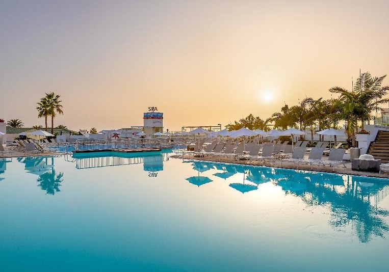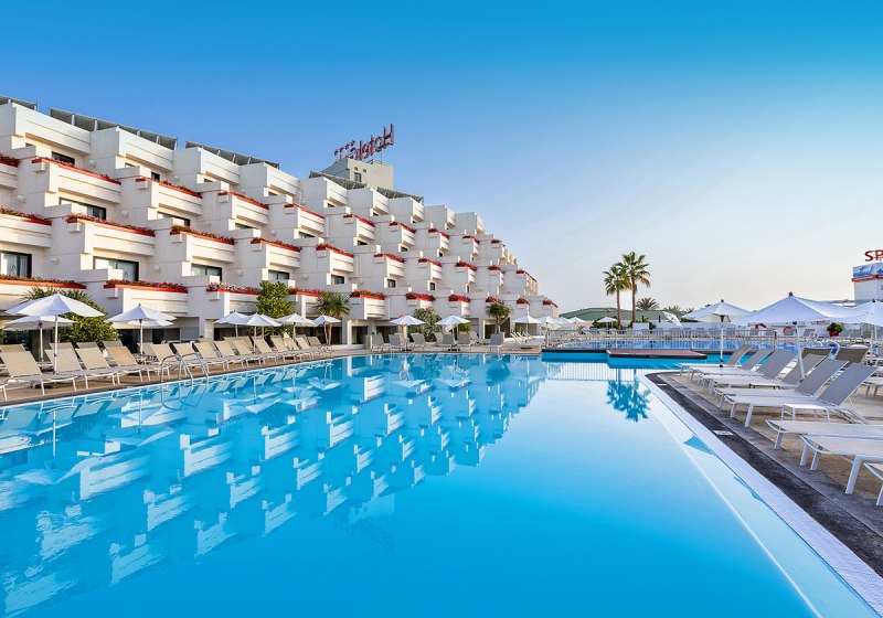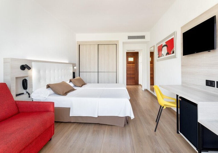 Die öffentlichen Bereiche wirken übersichtlich und funktional: zwei Außenpools, beheiztes Kinderbecken und großzügige Sonnenterrassen mit Liegen und Schirmen. Ergänzend entspannt Ihr auf der Chillout‑Terrasse. WLAN ist im gesamten Hotel und in den Zimmern inklusive, Poolhandtücher gibt es gegen Kaution.