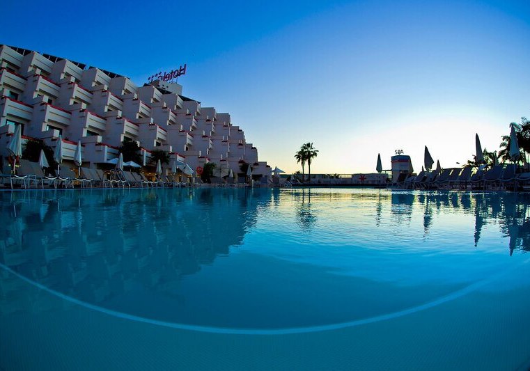 Im Alexandre Gala wohnt Ihr in zwei dreistöckigen Gebäuden mit 308 Zimmern, umgeben von einer gepflegten Gartenanlage. Herzstück sind zwei Außenpools, einer davon beheizt, dazu ein separates beheiztes Kinderbecken. Die Atmosphäre wirkt angenehm lebendig: Animation am Tag, abends Programm mit Livemusik, Spielen, Wettbewerben und Shows.