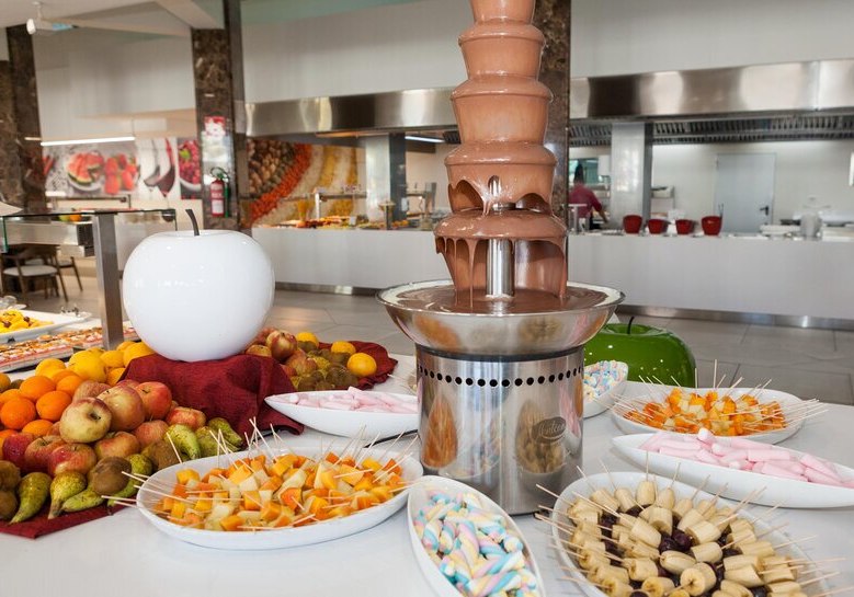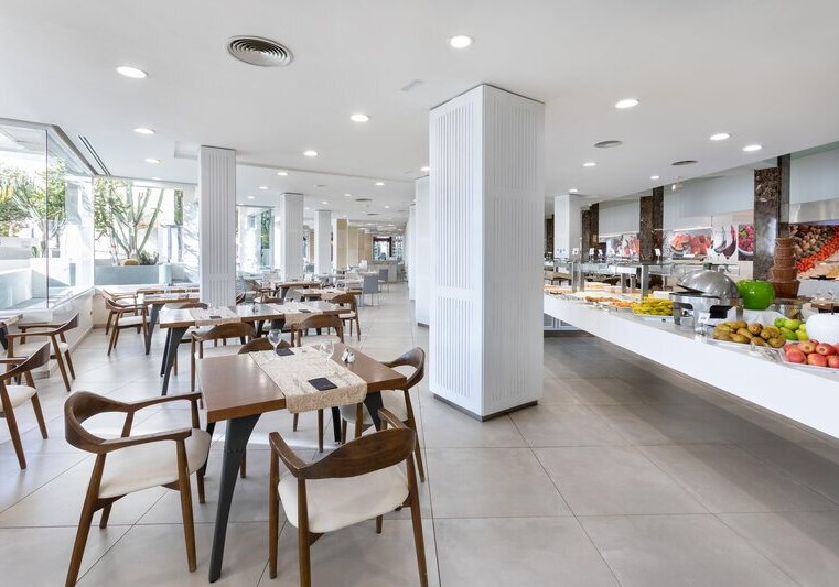 Im Buffetrestaurant trefft Ihr auf Show‑Cooking und Themenabende, flankiert von vegetarischen und Diätspeisen; Kinderhochstühle stehen bereit. Die Bar‑Salón Gala sowie die Pool‑/Snack‑Terrassenbar und die Snack Bar versorgen Euch tagsüber wie abends mit Drinks und kleinen Gerichten.