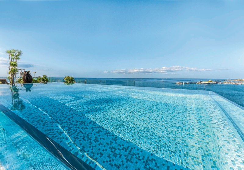 - Deluxe‑Zugang: Dachterrasse mit zwei Infinitypools und Whirlpool ab 18 Jahren.