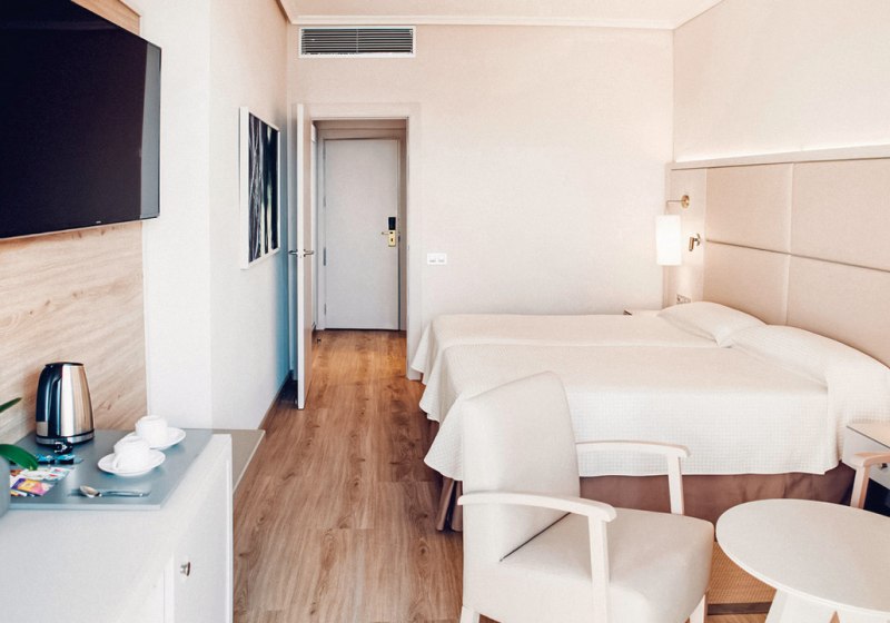 Die Zimmer sind auf das Wesentliche fokussiert: Balkon für Luft und Blick, Klimaanlage, Sat‑TV mit Musikkanal, Direktwahltelefon und Minibar gegen Gebühr. Im Bad findet Ihr Dusche und WC, Bademäntel, Haartrockner und Pflegeartikel – praktisch zusammengestellt für Tage zwischen Promenade, Pool und Restaurant. Seitlicher oder direkter Meerblick ist buchbar.
