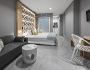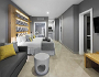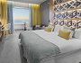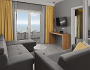 Die Juniorsuiten mit Meerblick sind freundlich gestaltet und etwa 26 Quadratmeter groß. Jede Suite besteht aus einem Schlafzimmer und einem Wohnbereich, der durch einen offenen Durchgang getrennt ist. Die Ausstattung beinhaltet ein Bad/WC, Flachbildschirm, Föhn, Kühlschrank, Mikrowelle, Musikkanal, Sat-TV, Telefon und Wasserkocher. Jede Suite hat auch einen Balkon und WLAN ist inklusive. Für Sicherheit sorgt ein Safe, der gegen Gebühr erhältlich ist.