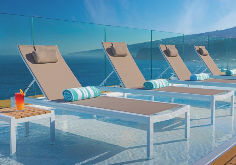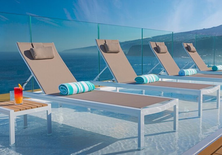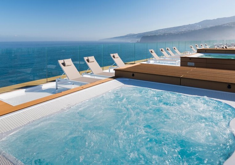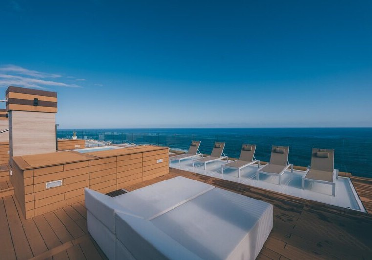 - Dachterrasse: Whirlpools und Liegen hoch über dem Atlantik.