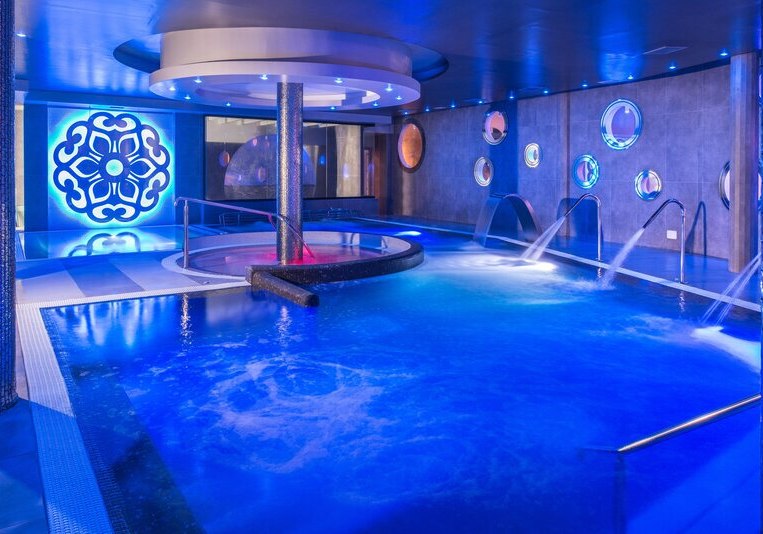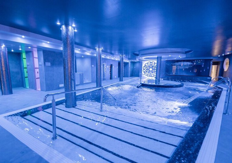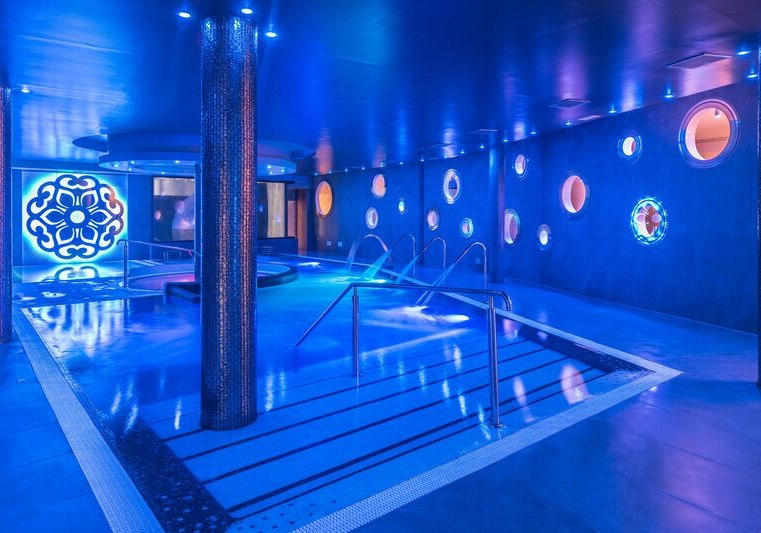 Im Spa SPACIO10 entspannt Ihr im Hydromassage-Pool, im Hallenbad und im Whirlpool. Wärme spendet das Türkische Bad, dazu stehen eine klassische Sauna, ein Floating-Raum und Sensationsduschen bereit. Die Räume sind ruhig gehalten und bieten klare Strukturen für konzentrierte Erholung.