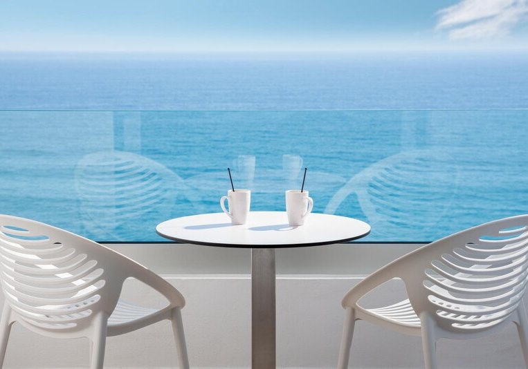 Alle Zimmer öffnen sich zum Meer und verfügen über einen möblierten Balkon – die Aussicht gehört hier dazu. Zur Ausstattung zählen Klimaanlage, WLAN, Telefon und Sat-TV. Ein leerer Minikühlschrank, Mikrowelle und Wasserkocher stehen bereit. Im Bad findet Ihr Doppelwaschbecken, begehbare Dusche, WC und Föhn; ein Kingsize-Bett rundet den Komfort ab.