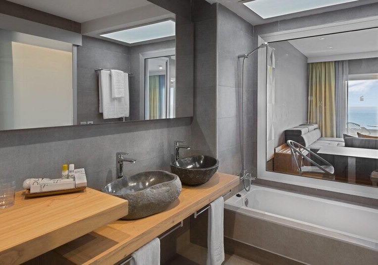„Für stilvolle Zeit zu zweit: Hotel Atlantic Mirage Suites & Spa vereint Klippenlage, Meerblick aus allen Zimmern und eine Dachterrasse mit Sky Bar – ideal für Eure Ferien, wenn Ihr Ruhe, Aussicht und gutes Essen verbinden wollt.“