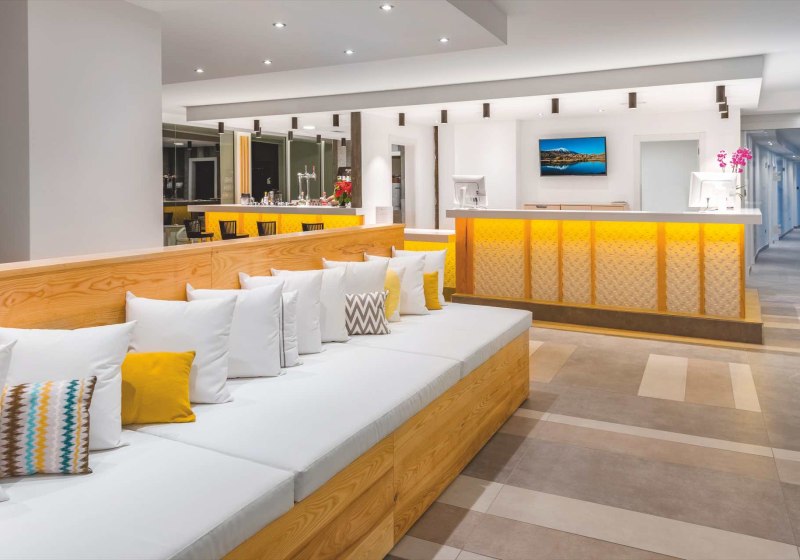 - Lobby oben: Rezeption in der 7. Etage mit Weitblick über die Küste.