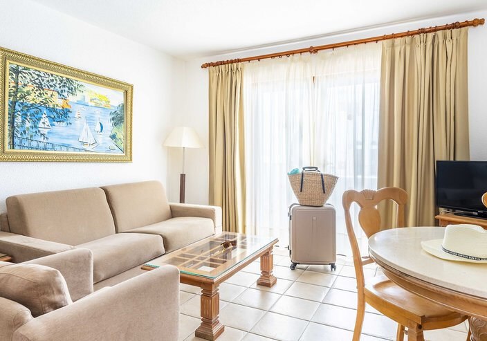 Ihr wohnt in Zimmern und Apartments mit Balkon oder Terrasse, meist mit Queen- oder Twinbett und zusätzlichem Schlafsofa. Kostenloses WLAN und regelmäßiger Handtuchwechsel gehören dazu, Babybetten sind kostenfrei vorgesehen. Viele Einheiten bieten separate Wohnbereiche – praktisch, wenn Ihr flexibel wohnen möchtet.
