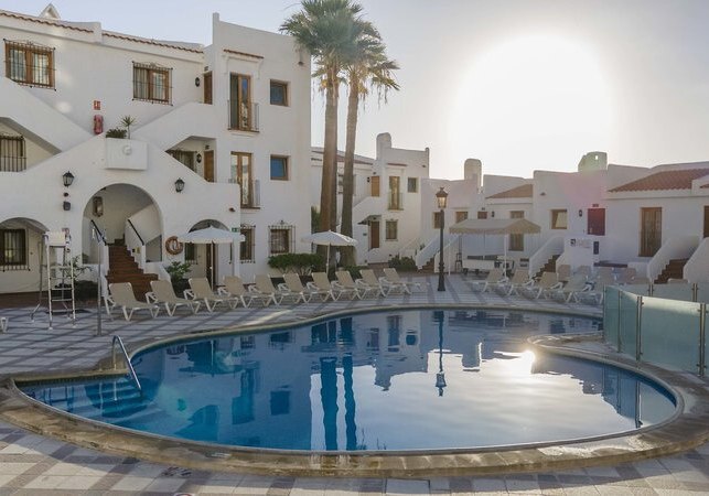 Im Beverly Hills wohnt Ihr in einer weitläufigen Clubanlage mit Haupt- und acht Nebengebäuden. Drei Außenpools und ein separates Kinderbecken strukturieren die sonnigen Tage, während die lebendige Atmosphäre von Los Cristianos nah genug bleibt. Familien und Aktivreisende finden ebenso ihren Rhythmus wie Erholungsuchende, die klare Strukturen schätzen.